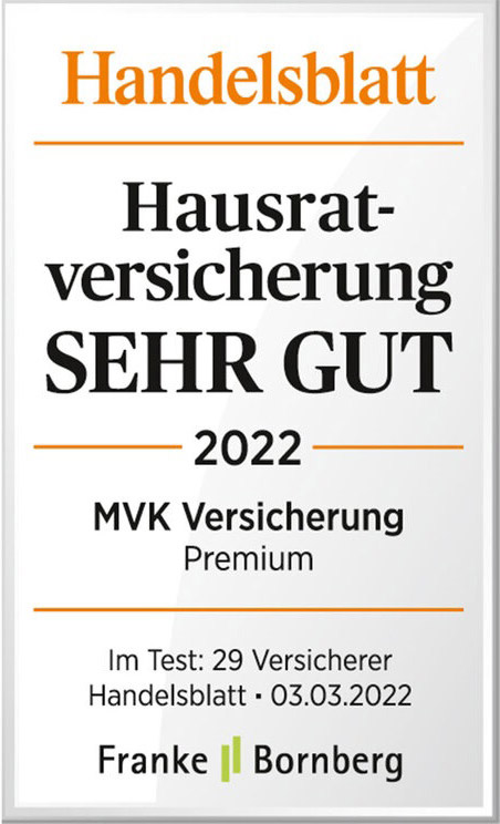 Wir empfehlen die MVK als Hausratversicherer aufgrund des sehr guten Preis-Leistungsverhältnis.